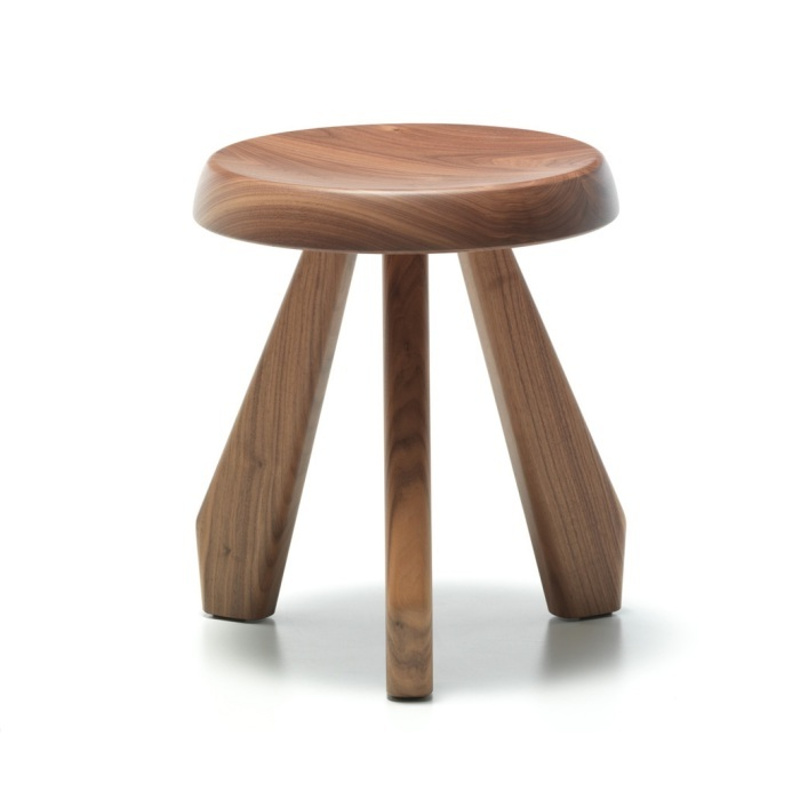 Ein Hocker mit drei gedrechselten Beinen und in drei Massivholz Ausführungen.