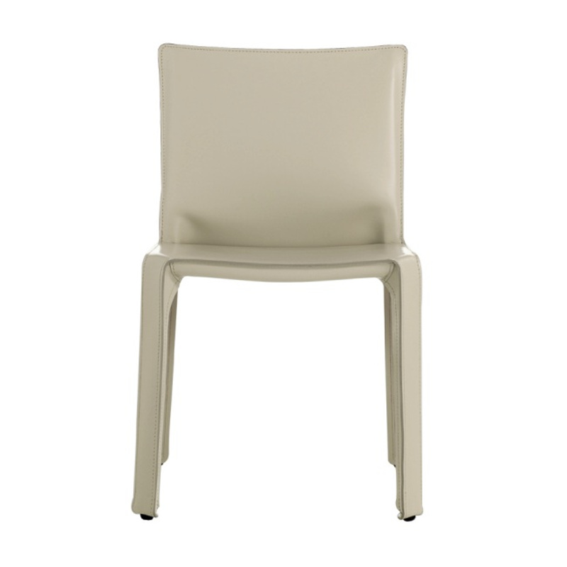 Bellinis Cab besteht im wesentlichen aus zwei völlig voneinander getrennten Elementen. Über das bloße Stahlrohrgerüst des Stuhls ist wie eine straffe Haut ein Bezug aus Kernleder gespannt.